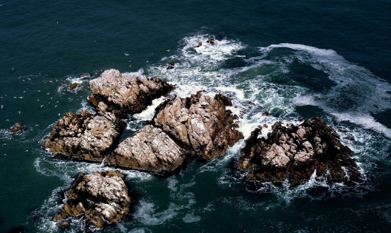 대왕암은 육지에서 200여 미터 떨어진 가까운 바다에 위치하고 있습니다. 중앙에는 넓은 공간이 있고, 그 주변을 큰 바위가 둘러싸고 있습니다. 네 방향으로 물길이 흐르고, 중앙 공간으로 흘러들어온 바닷물은 서쪽 물길을 통해 빠져나가게 됩니다.