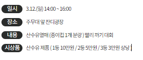 일시 3월 12일(일) 오후 2시부터 4시까지 진행됩니다.