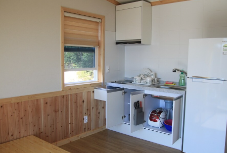 비치품목 : 싱크대, 냉장고, TV, 전기밥솥, 전기레인지, 선풍기, 식기류, 침구류, 화장실