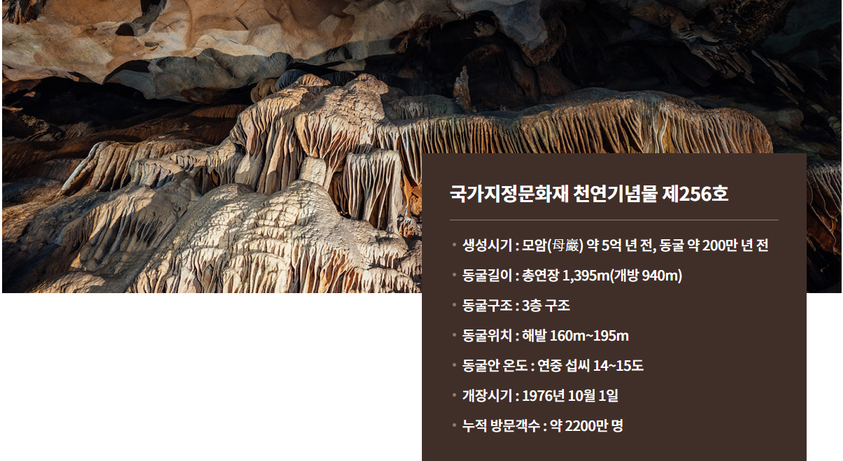 우리나라엔 참 많은 동굴이 있죠? 하지만 우리나라 최초의 자연동굴이자 동양 최대 규모라는 타이틀을 가진 고수동굴은 특별함을 가지고 있기에 더더욱 방문해야 하는 장소라고 생각됩니다. 특히 여름휴가철이면 더위를 피해 시원한 동굴을 찾으시는 분들이 많은데, 이번 여름휴가는 가족들과 함께 시원하고 신기한 고수동굴로의 여행 어떠신가요?
