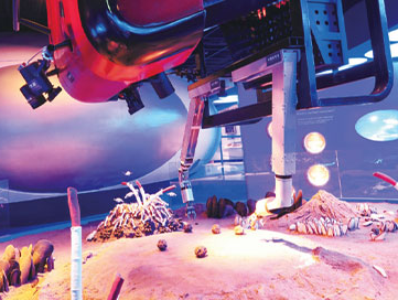 수심 1,000m이하 심해속 공간을 이해하도록 구성되었습니다. 해저지형, 열수공 주변 생물, 해저광물 탐사, 심해잠수정 활동, 수압ㆍ수심 이해 그리고 우리나라 해역 지형을 알아가도록 전시공간을 구성하였습니다.
