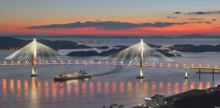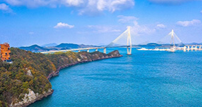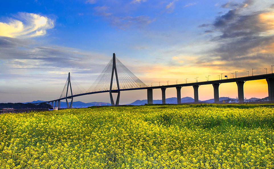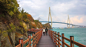 목포대교는 목포의 해지는 저녁은 고하도 용머리길에서 바다를 뜨겁게 달구며 넘어가는 황홀한 낙조를 만날 수 있습니다.