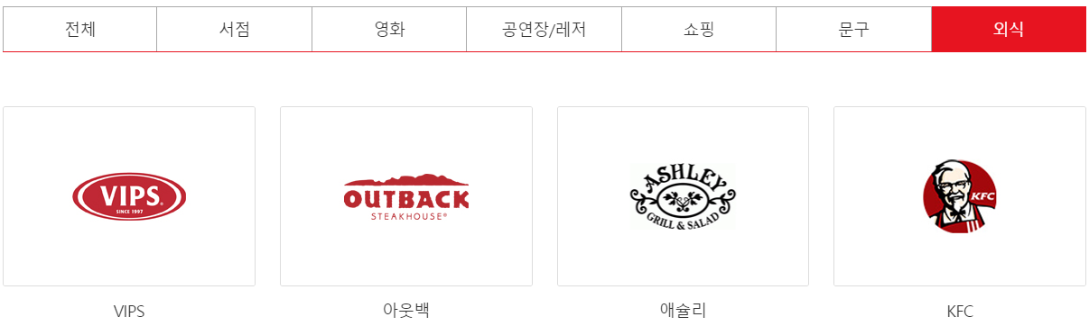 또한, 음식점에서도 VIPS, 아웃백, 애슐리, KFC 등에서 문화상품권을 사용할 수 있습니다.