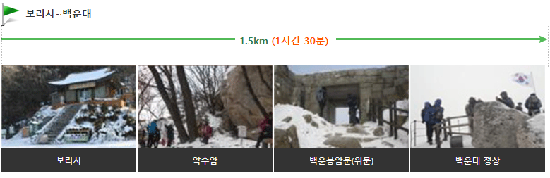 보리사 ~ 백운대 : 1.5km, 1시간 30분 (보통-어려움)