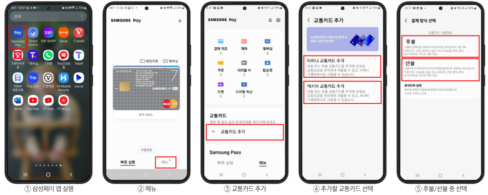삼성페이를 이용해 교통카드를 등록하는 삼성페이 교통카드 사용법은 다음과 같습니다.