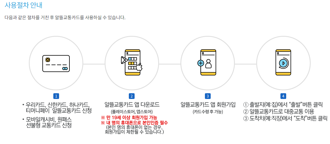 알뜰교통카드나 모바일 알뜰교통카드로 교통비 지불