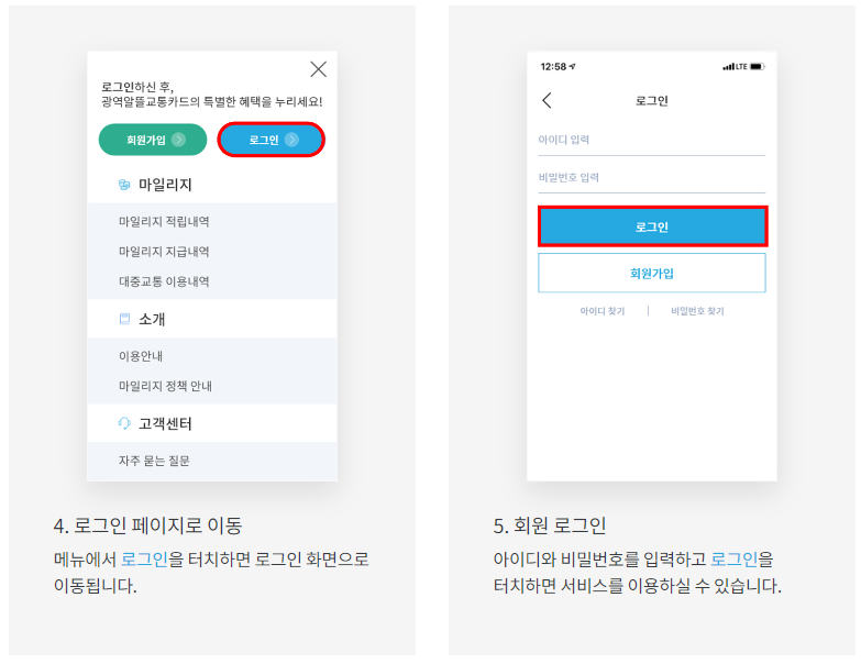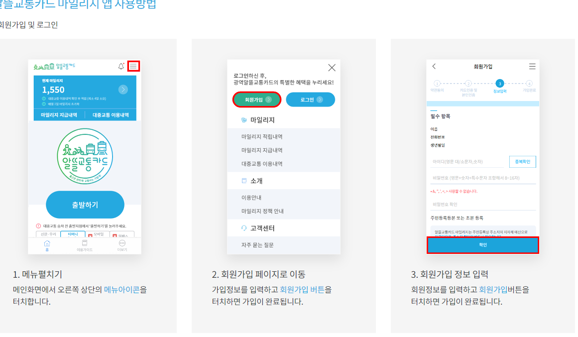 알뜰교통카드 앱 다운로드 및 (카드 수령 후) 회원가입