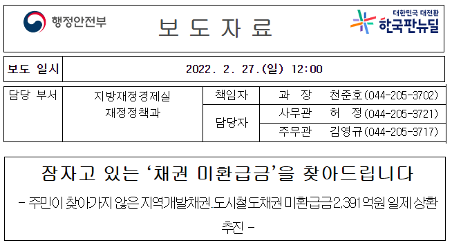 행안부에서 ‘지역개발채권 미환급금 일제 상환’을 실시한다고 밝혔습니다.