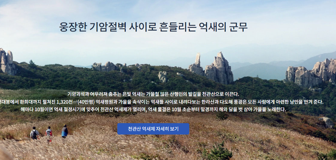 호남 5대 명산 중 하나로 천관산은 다양한 모양으로 솟아 있는 기암괴석이 마치 주옥으로 장식된 천자의 면류관 같다하여 붙여진 이름이다.