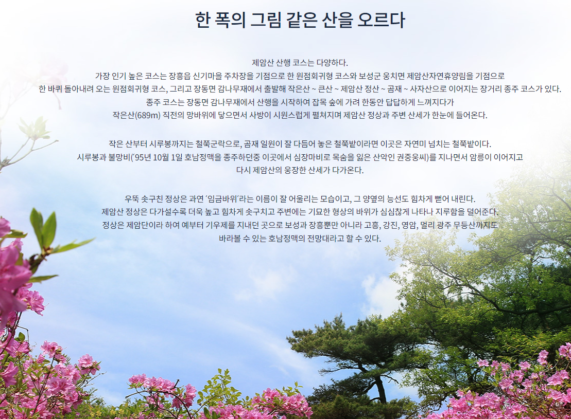 코스4(구룡봉) : 천관문학관-탑산사-구룡봉-환희대-연대봉(4.2km, 2시간)