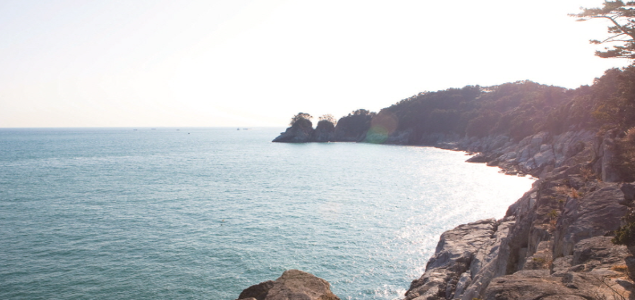 지심도에는 가파른 언덕길과 좁은 길이 이어지는데, 이곳이 섬 안으로 들어가는 유일한 통로입니다. 경치는 황톳길 산책로에서 시작하여, 상록수 사이로 보이는 푸른 하늘과 빛나는 남해의 쪽빛 바다로 이어집니다. 이곳에서는 동박새나 직박구리의 울음소리를 들을 수 있으며, 미조라와 서이말 등대는 한 폭의 그림과 같습니다.