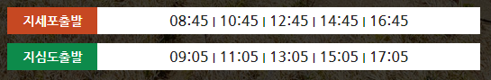 지세포와 지심도를 연결하는 선박의 출발 시간표입니다.